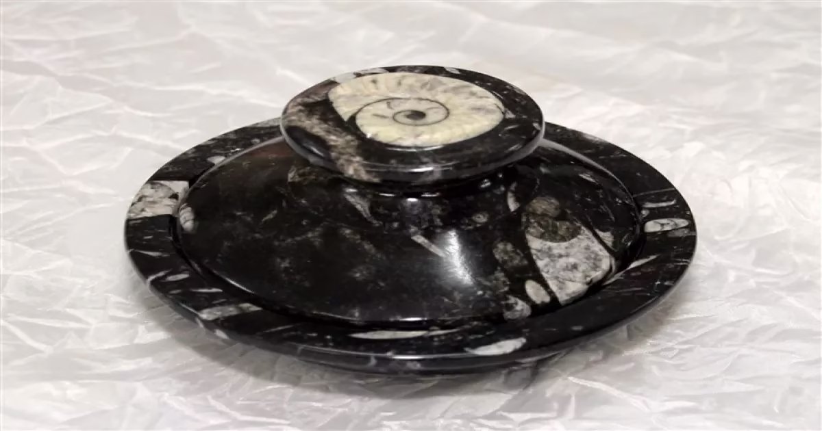 The handmade Bowls on this page are a wonderful example of Moroccan craftsmanship. Each bowl contains a fossilized Ammonite or Orthoceras. These gorgeous items look great in any setting. Each one is unique, hand-picked, and of the highest quality. The plates and platters on this page are entirely handmade in Morocco. They highlight the amazing natural beauty of the fossilized Ammonite and Orthoceras. These 345 million-year-old marine fossils were discovered in an arid location.