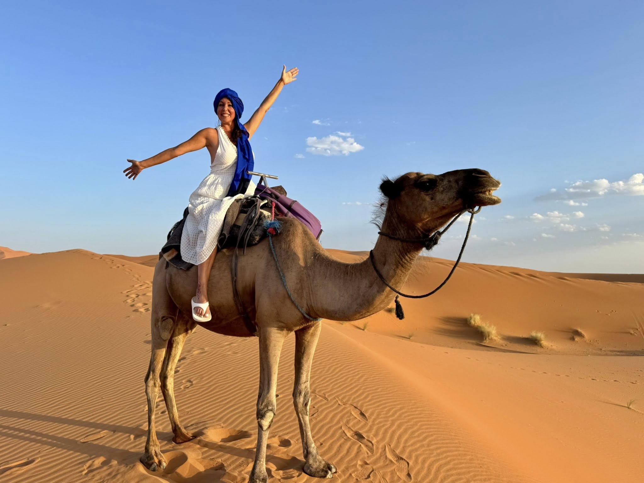 El tour incluye traslados al aeropuerto, 7 noches en riads tradicionales y un campamento en el desierto, visitas guiadas a Marrakech, Merzouga y Fez, además de transporte privado con un conductor local.