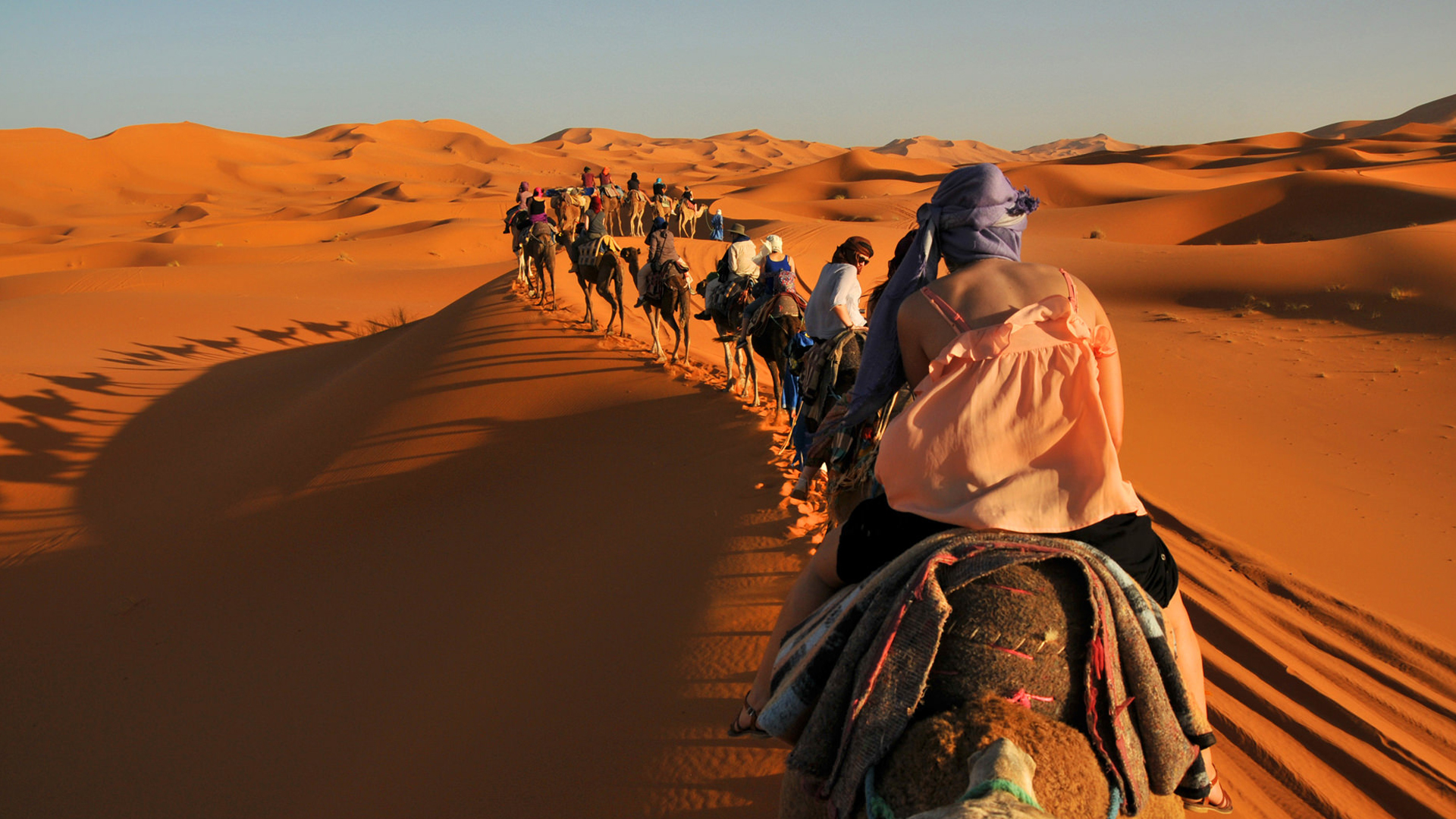Tras la visita a Sefrú, nos dirigiremos hacia el sur a través del Alto Atlas, alcanzando una altitud de 1917 metros sobre el nivel del mar. Aquí, haremos una parada en el valle del Ziz, una de las mayores fuentes de dátiles de Marruecos. Al caer la tarde, llegaremos a Merzouga, el desierto del Sahara. Aquí, pasearán en camello por las dunas doradas de Erg Chebbi, parando a contemplar la puesta de sol desde lo alto de una gran duna. Después, descenderemos en camello por las dunas hasta el campamento en el desierto, nos alojaremos y cenaremos.