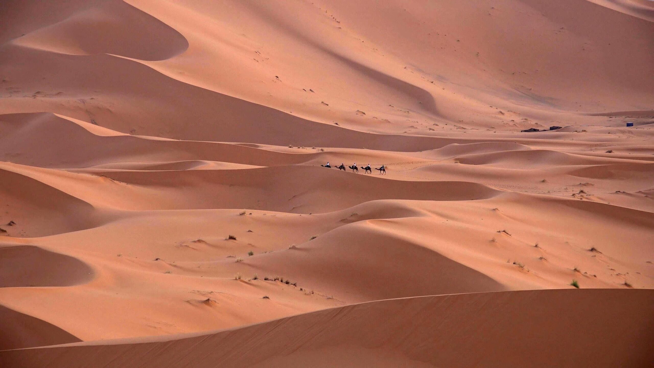 After having lunch in either Tinghir or Tinjedad, we will drive to Merzouga. Here, we start the desert adventure with a camel ride across the golden dunes of Erg Chebbi, making a stop to watch the sunset. Then, we head to the desert camp, check into your tents, have dinner, and then gather around the campfire to enjoy the drum party.
